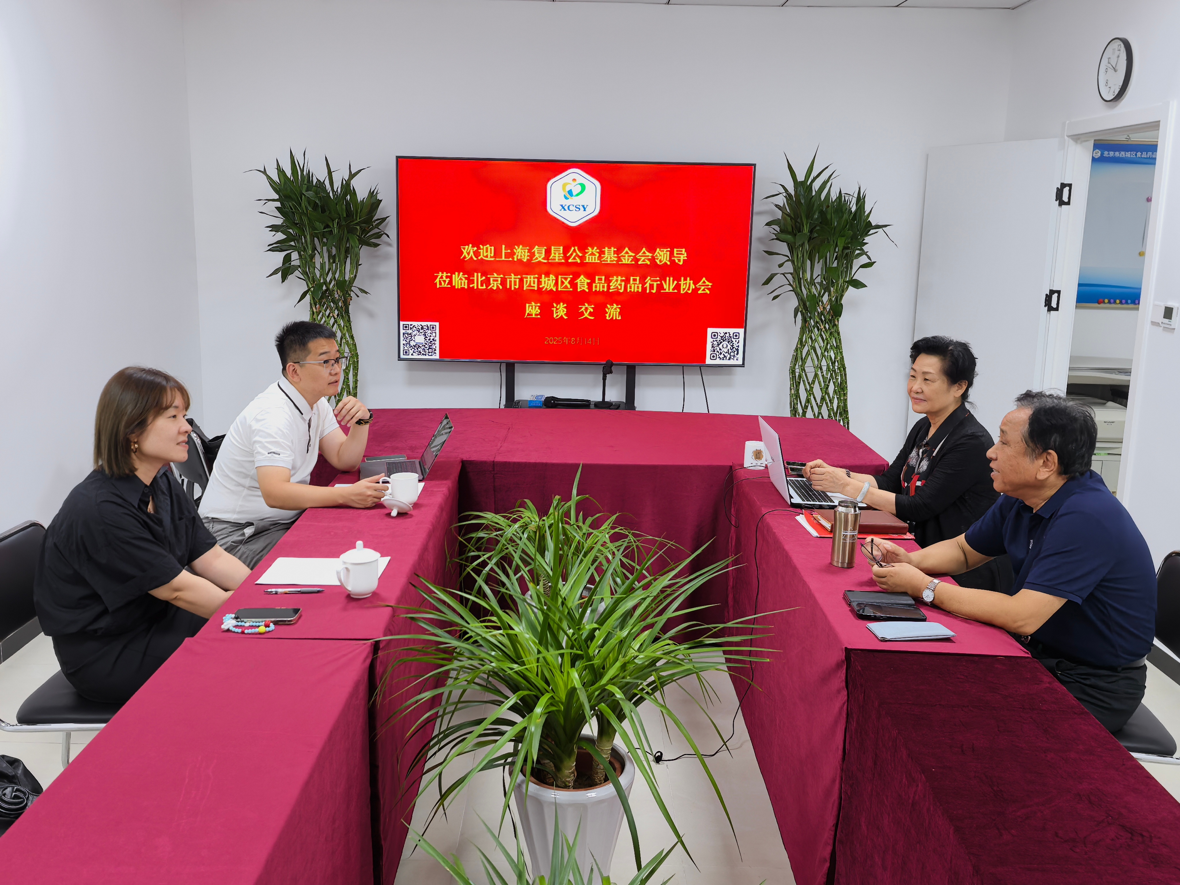 为全面评估“海鸥热线”免费用药咨询公益平台近一年运行成效,共商平台未来高质量发展大计,2025年8月14日,平台发展专题座谈会在北京市西城区食品药品行业协会(简称“西城食药协会”)成功举办。“海鸥热线”公益平台发起方之一上海复星公益基金会副秘书长袁文婕、项目经理郭帅一行专程赴京,与西城食药协会会长徐军、党支部书记、高级顾问赵鸣舒及相关工作人员共同座谈,双方围绕“海鸥热线”公益平台的进展与未来规划进行了深入、务实的交流。